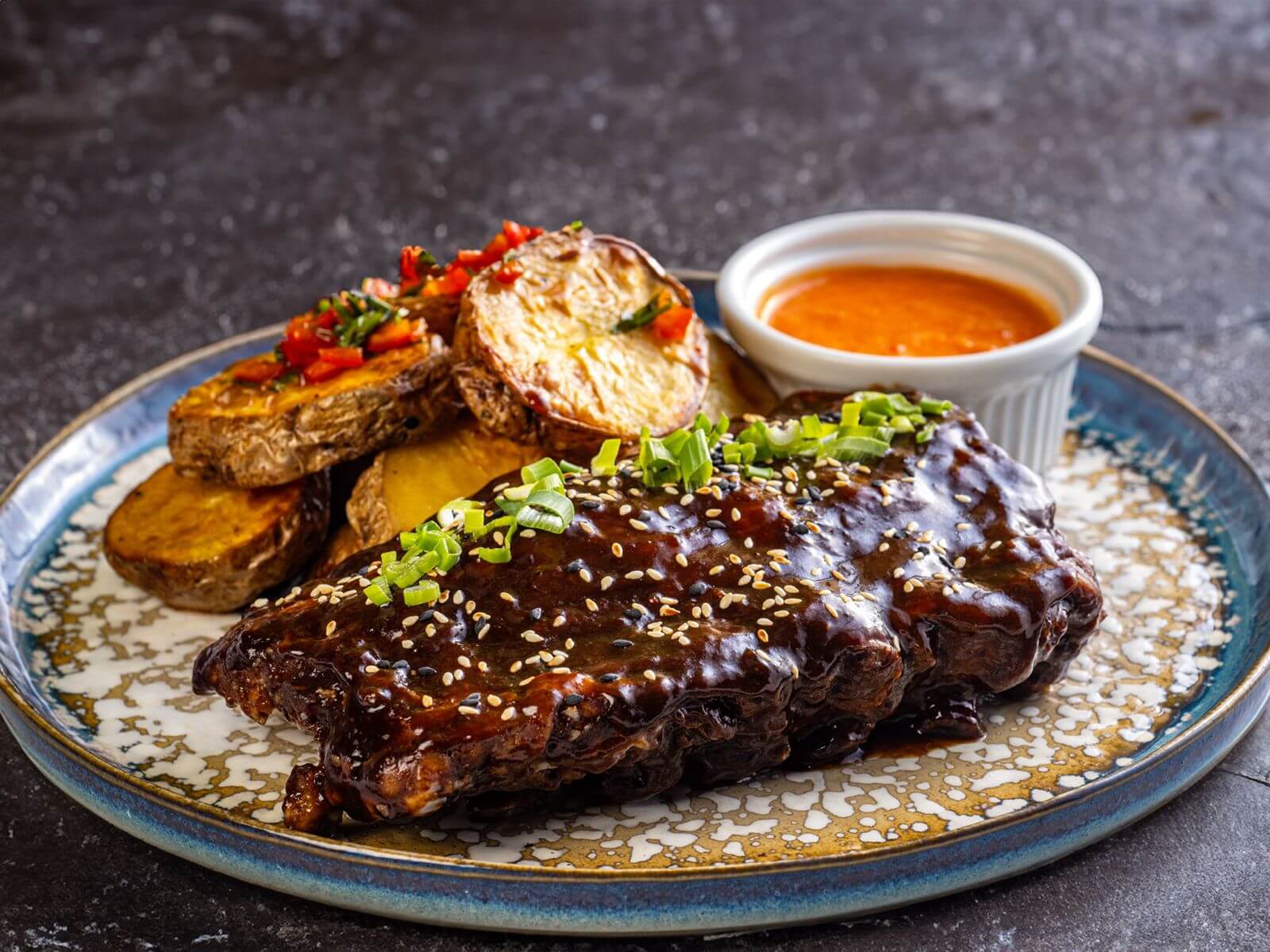 Mușchi de vită la grătar cu sos de piper verde/ sos de hribi/sos gorgonzola
