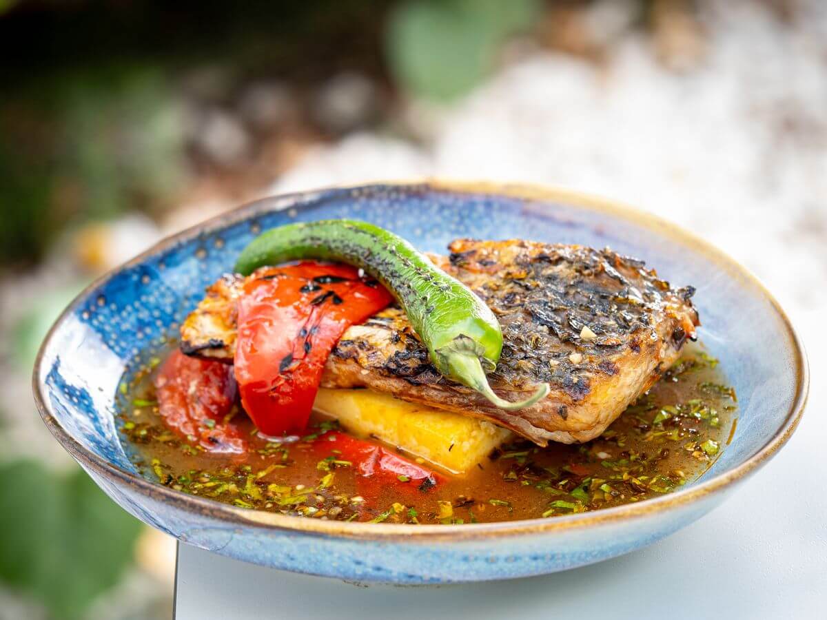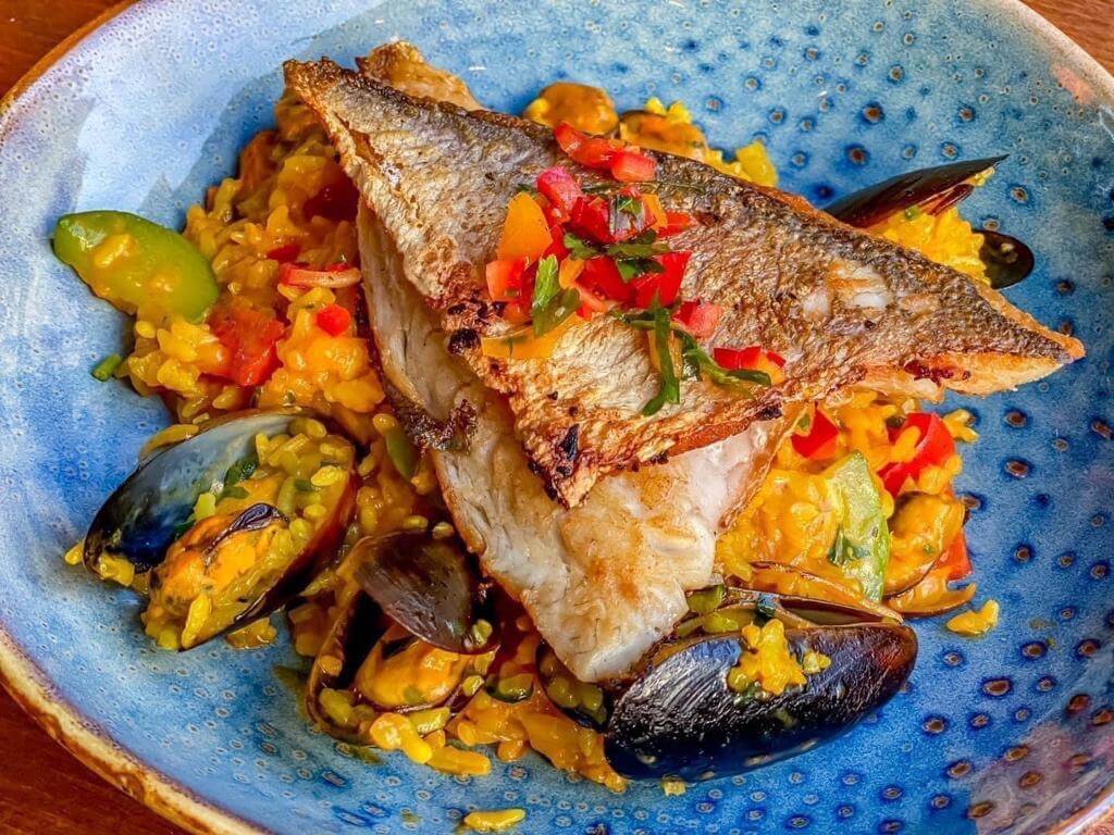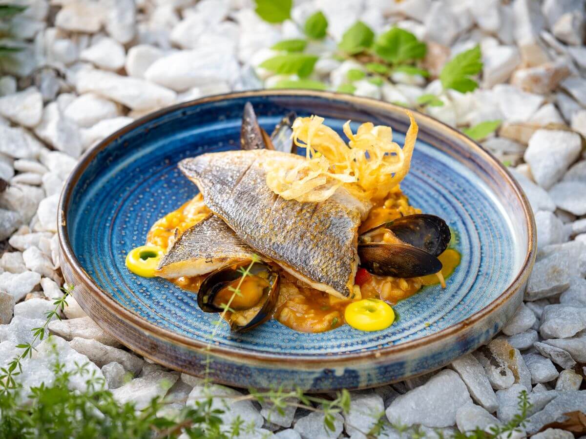 ❄file de dorada 200g, orez 40g, ❄carne de scoici 50g, midii 50g, ardei 30g, ceapa 30g, dovlecel 30g